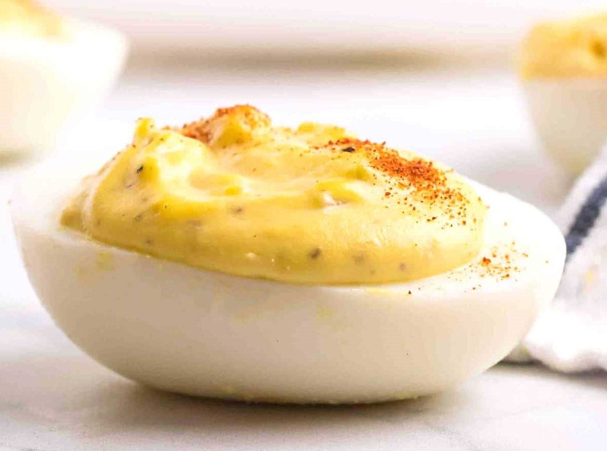 Deviled or use Indian lime pickle, or mango chutney, hot sauce for a bit of heat, or beet horseradish.
