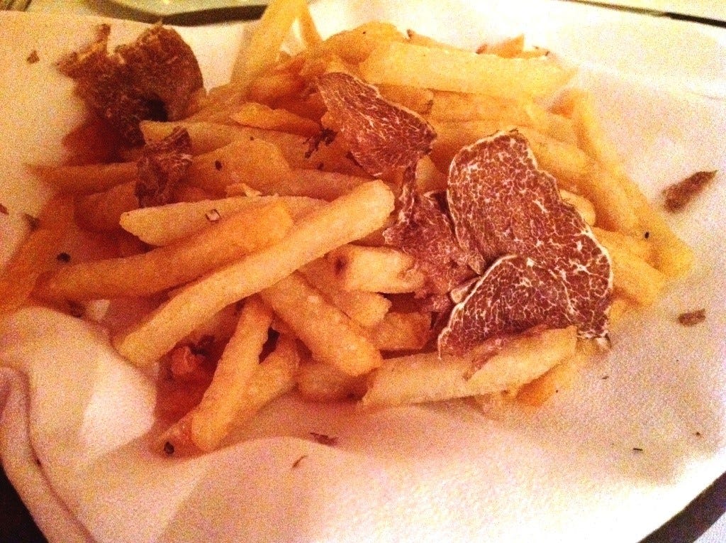 The perfume of the truffles coming off the bed of those other tubers, as their heat penetrated the slices, suffused the air around our table. Even the waiter looked a bit faint as I asked him to use my i-Pad to photograph the truffles falling onto the most glorious fried potatoes I had ever seen, smelled, and finally tasted.